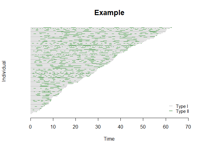 plot(bivrec_object, main="Example", type = c("Type I", "Type II"), col = c("darkgrey","darkgreen"))