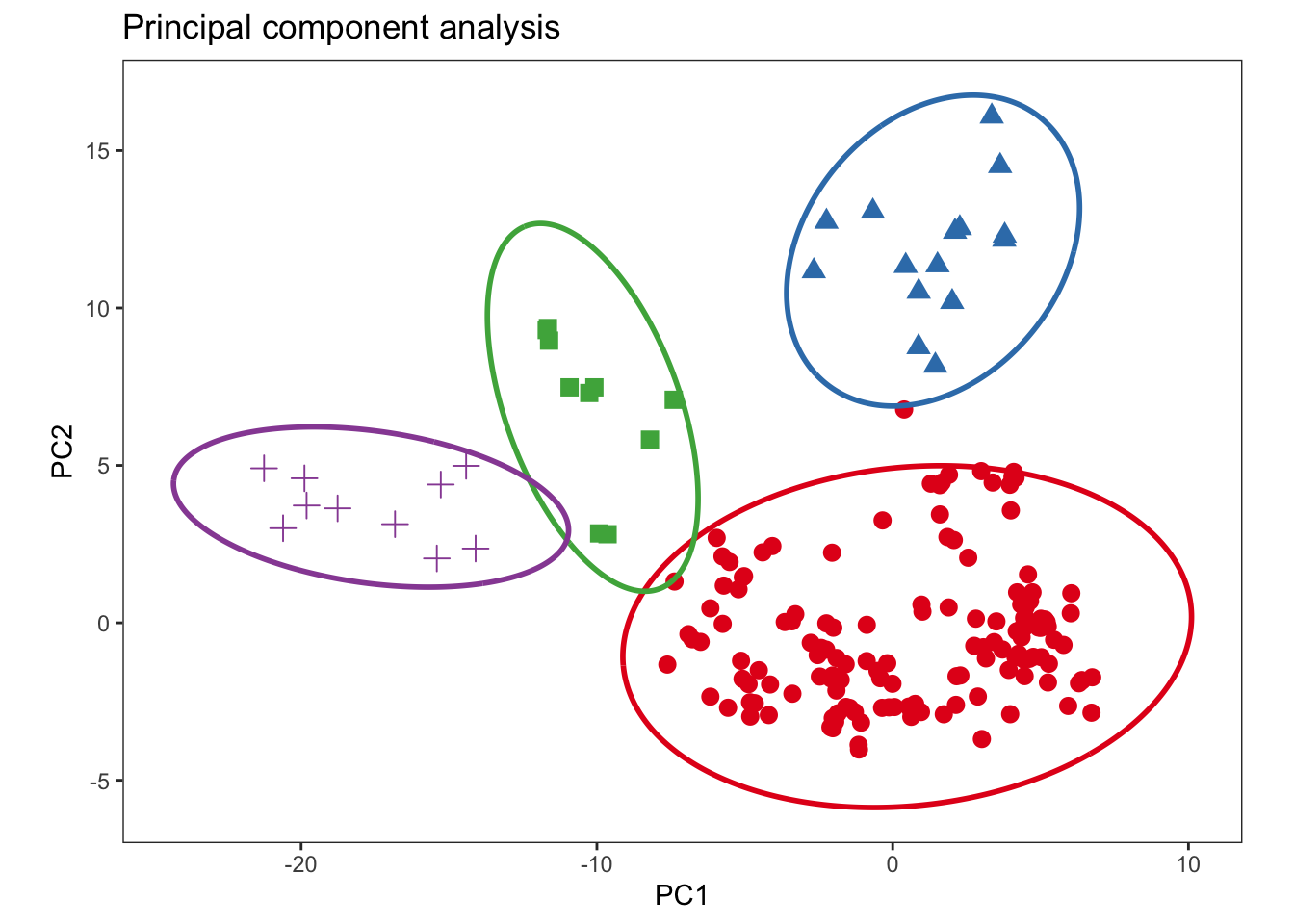 labs(x = "PC1", y = "PC2", title = "Principal component analysis") +