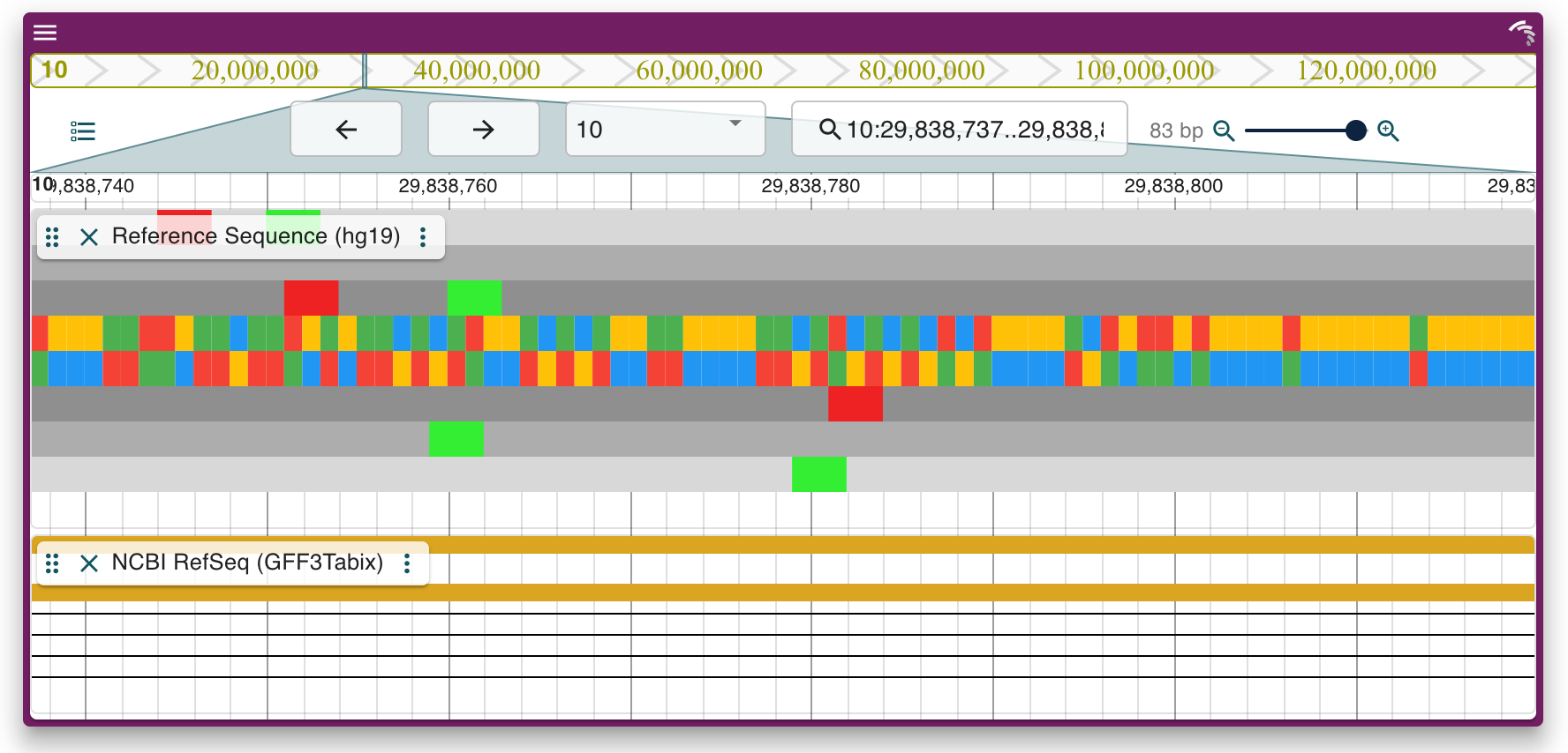 JBrowseR("ViewHg19", location = "10:29,838,737..29,838,819")