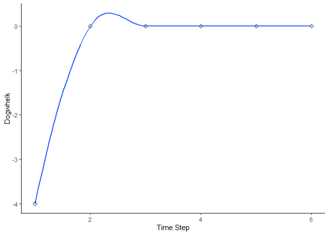 This function produces a network diagram in each timestep of the model, rather than the graph produced above. The most important interactions at that timestep are listed and the colour of nodes changes from black (showing the highest increase) to white (showing the lowest increase / largest decrease)