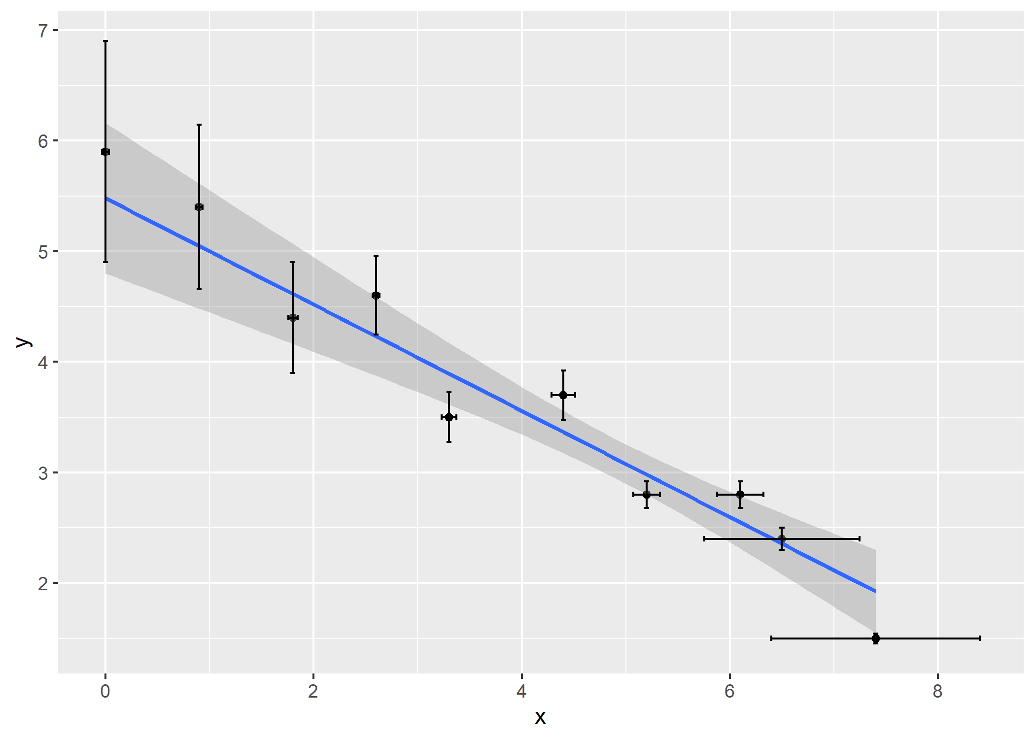 geom_smooth(method = bfsl, method.args = list(sd_x = df$sd_x, sd_y = df$sd_y)) +