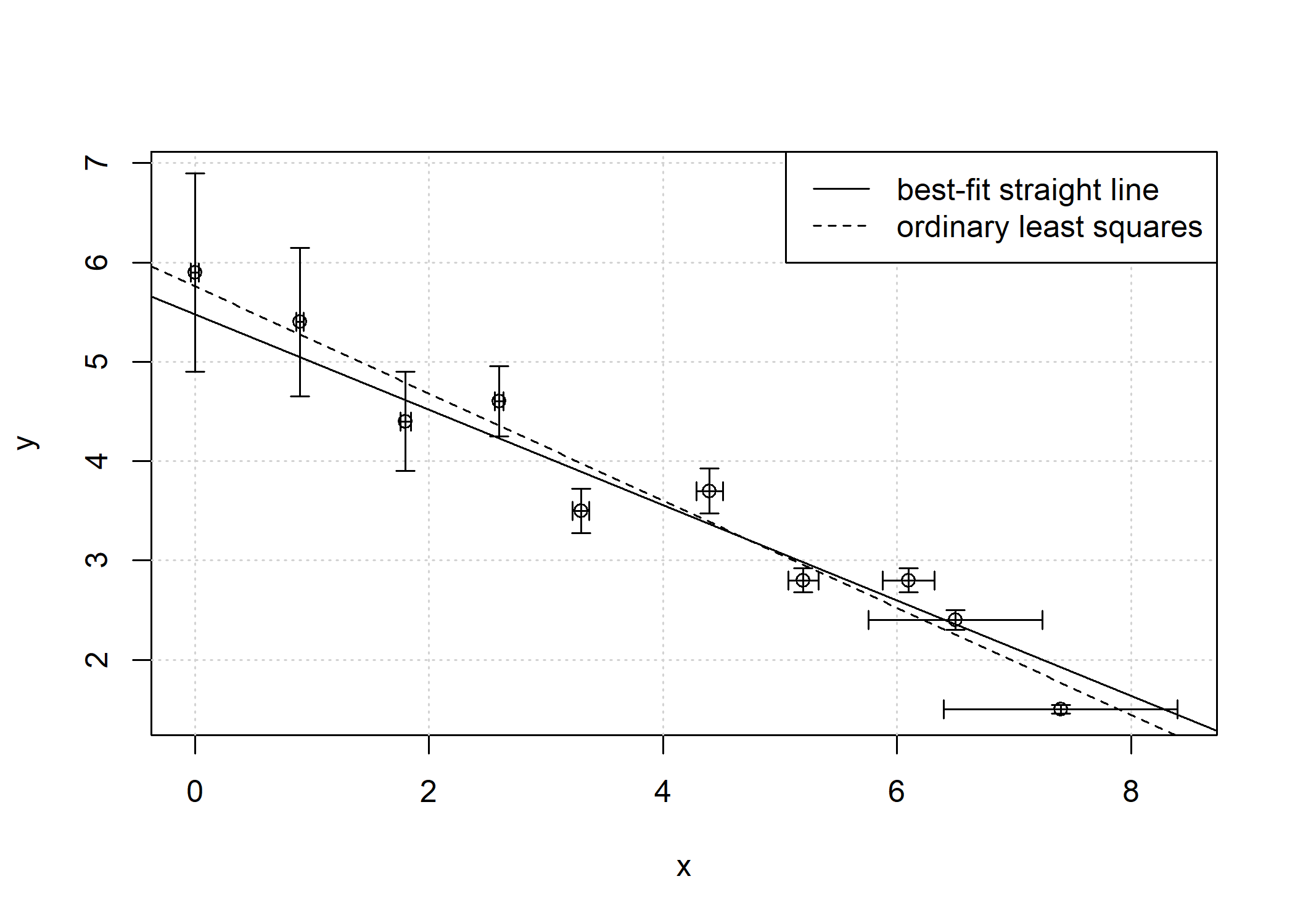 Williamson, J. H. (1968). Least-squares fitting of a straight line, Canadian Journal of Physics, 46(16), 1845-1847, https://doi.org/10.1139/p68-523