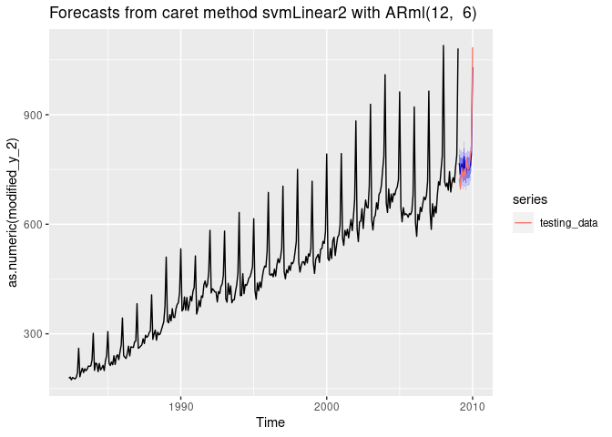 fit <- ARml(training_data, max_lag = 12, caret_method = "svmLinear2",