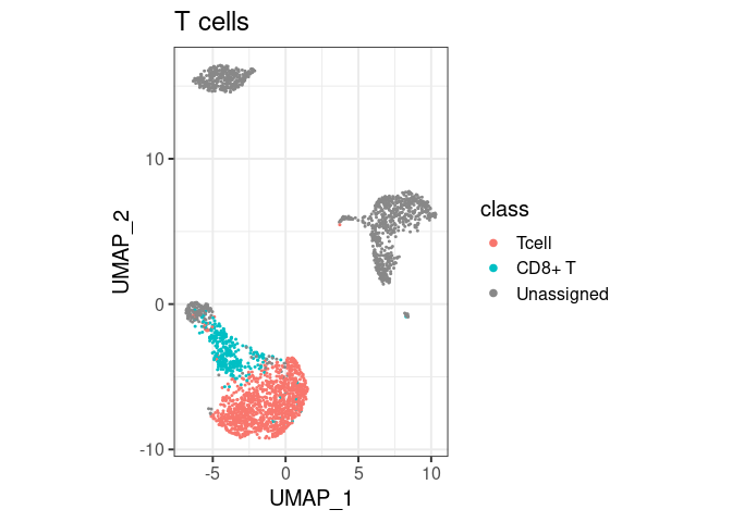 plot_last function plots the last rule you have added to the object. You can move it between any of the above lines to look at the preceding rule, as indicated by the commented plot_last call above.parent argument, to arbitrary depths. In this example, CD8+ T cells are CD3E+CD8A+, not just CD8A+, because their ancestor Tcell had a rule for CD3E.pype_code_template().Get cell type labels with classify or plot them directly with plot_classes (which wraps ggplot2 code around classify):