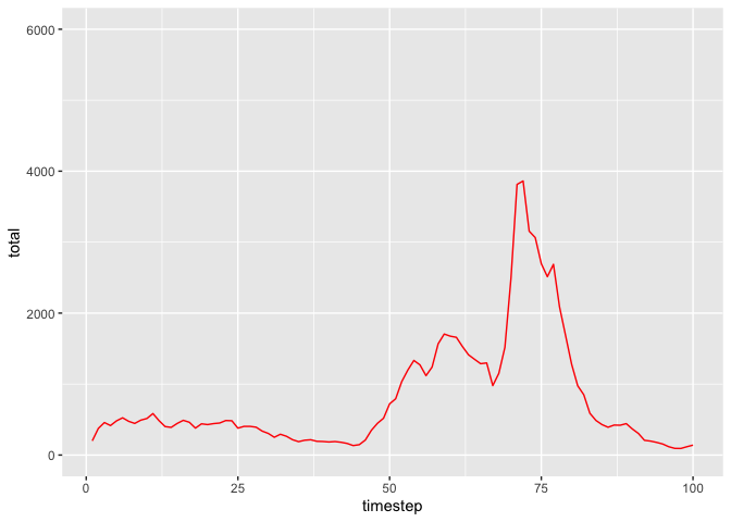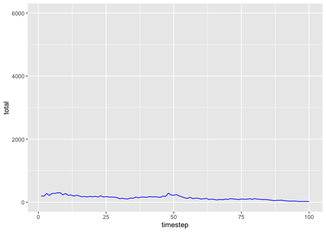 ggplot(pop_blue, aes(x = timestep, y = total)) + geom_line(col="blue") + ylim(0, 6000)