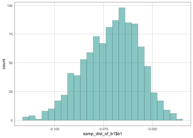 #> [1] 1.787835e-07The estimate extraction functions help to simplify the ability to create bootstrapped sampling distributions of those estimates. Here is an example of bootstrapping the slope: