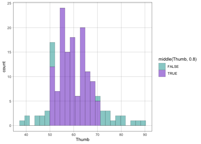 gf_histogram(~Thumb, data = Fingers, fill = ~ middle(Thumb, .80))