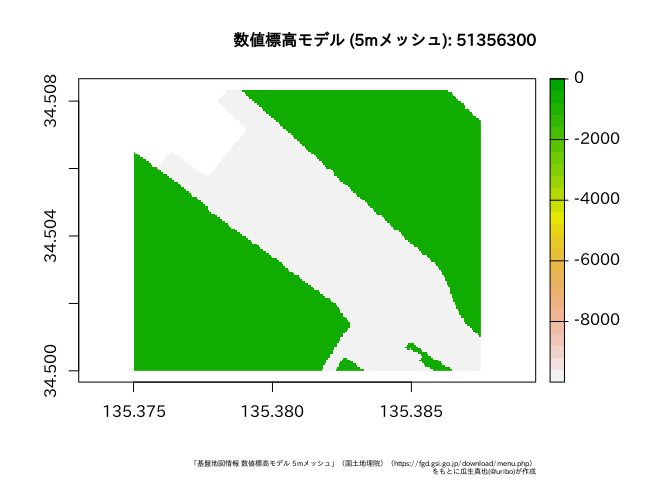 sub = "「基盤地図情報 数値標高モデル 5mメッシュ」(国土地理院)(https://fgd.gsi.go.jp/download/menu.php)\nをもとに瓜生真也(@uribo)が作成",