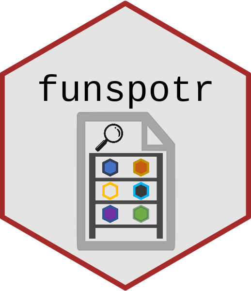 spot_funs() worksThe goal of funspotr (R function spotter) is to make it easy to identify which R functions and packages are used in files and projects. It was initially written to create reference tables of the functions and packages used in a few popular github repositories1.