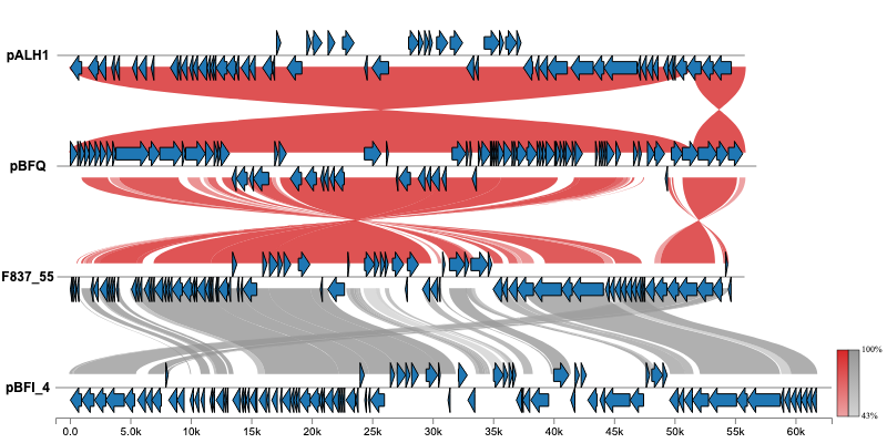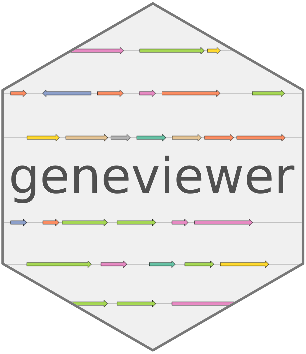 geneviewer is an R package for plotting gene clusters and transcripts. It imports data from GenBank, FASTA, and GFF files, performs BlastP and MUMmer alignments, and displays results on gene arrow maps. The package offers extensive customization options, including legends, labels, annotations, scales, colors, tooltips, and more. To explore all features visit the package website.