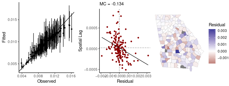 #> 3 NA values found in x will be dropped from data x and from matrix w (nb: this disrupts row-standardization of w)