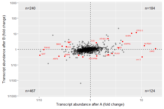 quadrant plots as used for transcriptomics, metabolomics and similar