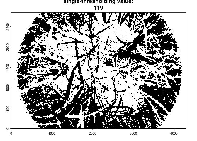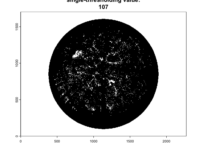 Once imported, the function performs image classification using a single automated thresholding from the auto_thresh() functionality of the autothresholdr package: