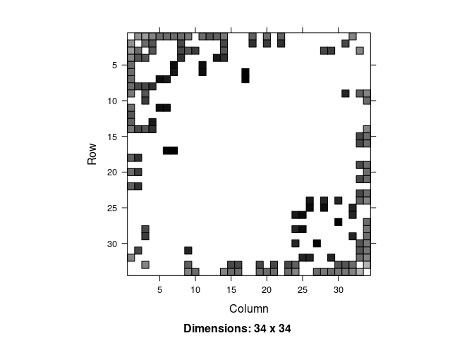 Here we show how invertiforms might help you quickly perform regularized spectral clustering. First we grab some network data and quickly visualize the adjacency matrix.