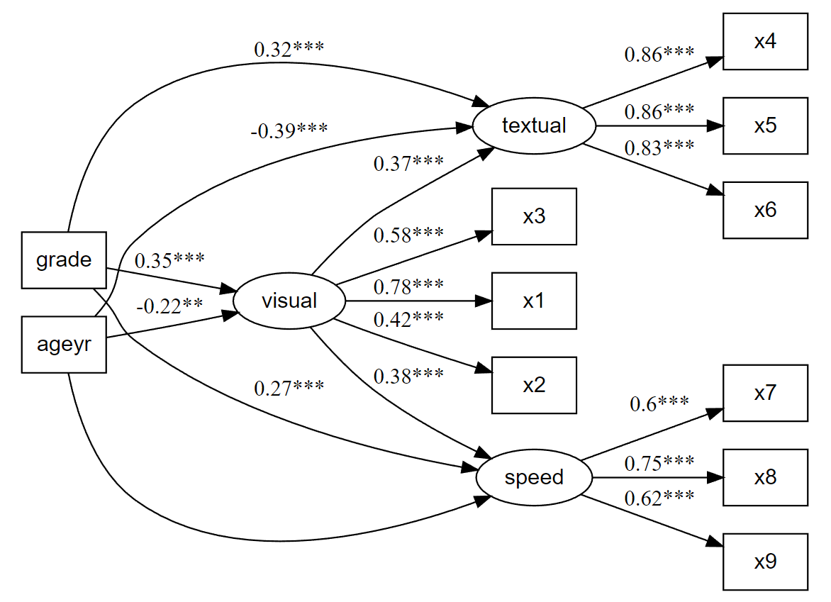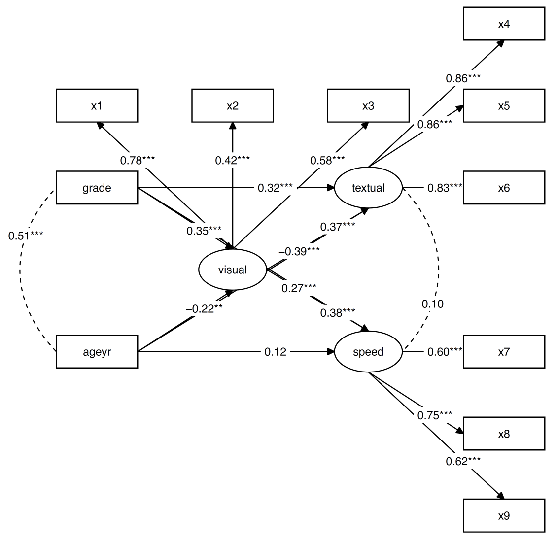 fit.sem <- sem(model, data = HolzingerSwineford1939)# Get regression parameters and make pretty with `rempsyc::nice_table`