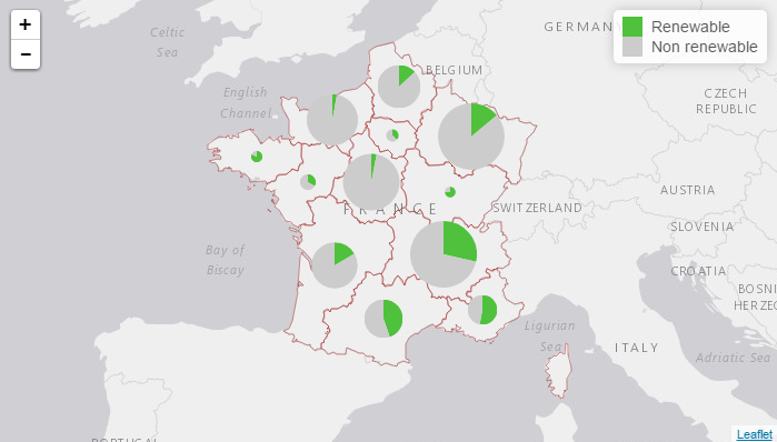 leaflet.minicharts is an R package that provides two functions to add and update small charts on an interactive maps created with the package leaflet. These charts can be used to represent as many variables as desired associated to geographical points. Currently, three types of chart are supported: barcharts (the default), pie charts and polar area charts (with two variants: “polar-area” and “polar-radius”, where values are represented respectively by the area or the radius of the slices).