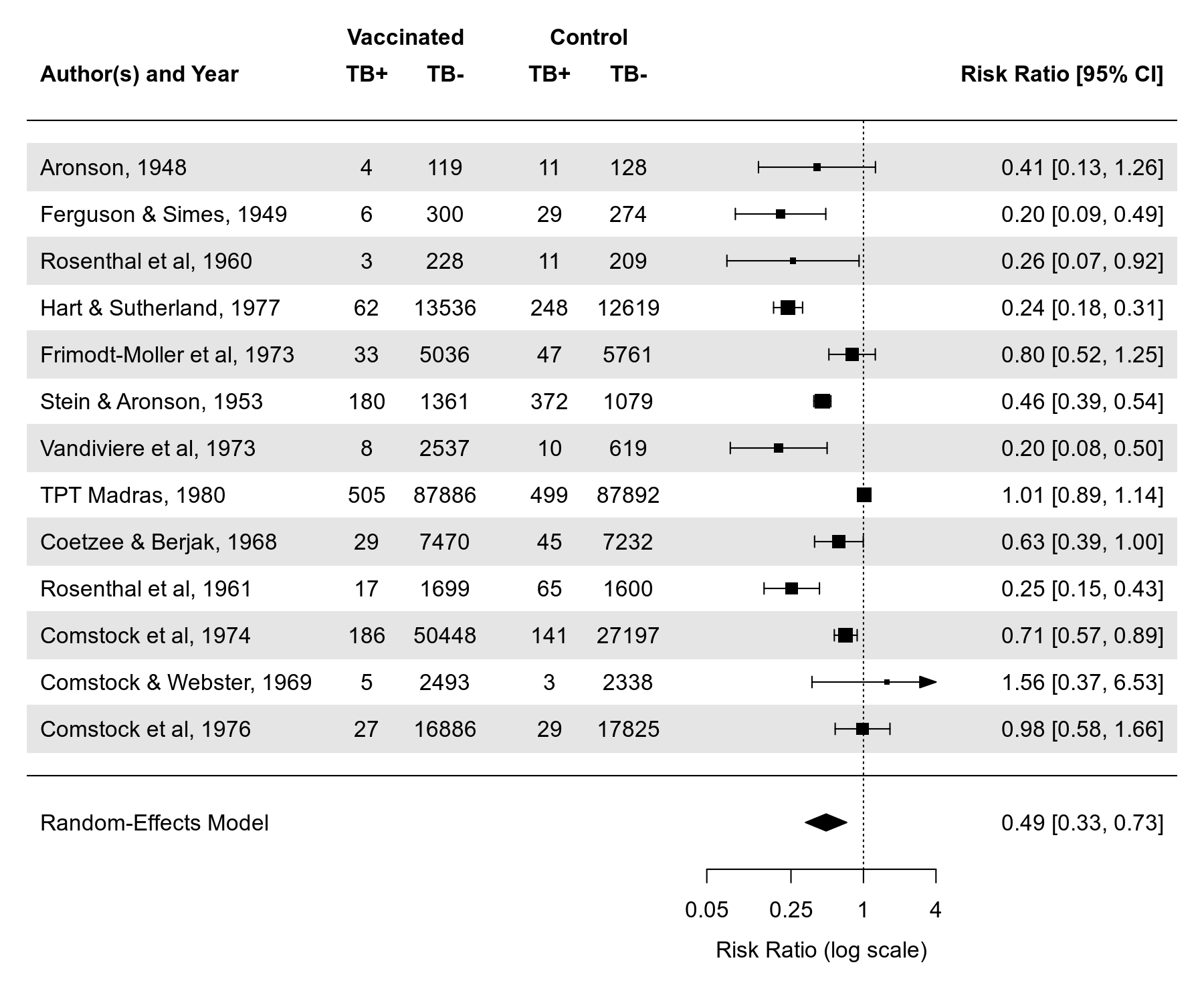 ## 5      5 Frimodt-Moller et al 1973   33  5036   47  5761    13  alternate -0.2175 0.0512