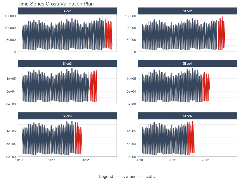 Here is an example from Resampling Panel Data, where we can see that Prophet Boost and XGBoost Models outperform Prophet with Regressors for the Walmart Time Series Panel Dataset using the 6-Slice Time Series Cross Validation plan shown above.