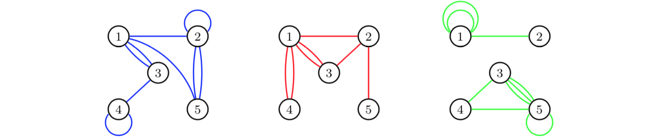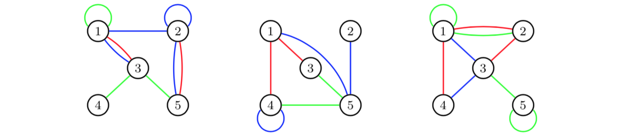 Edge aggregation can also be used to obtain multigraphs. Assume that we study a graph with three different types of relations over three periods of time: