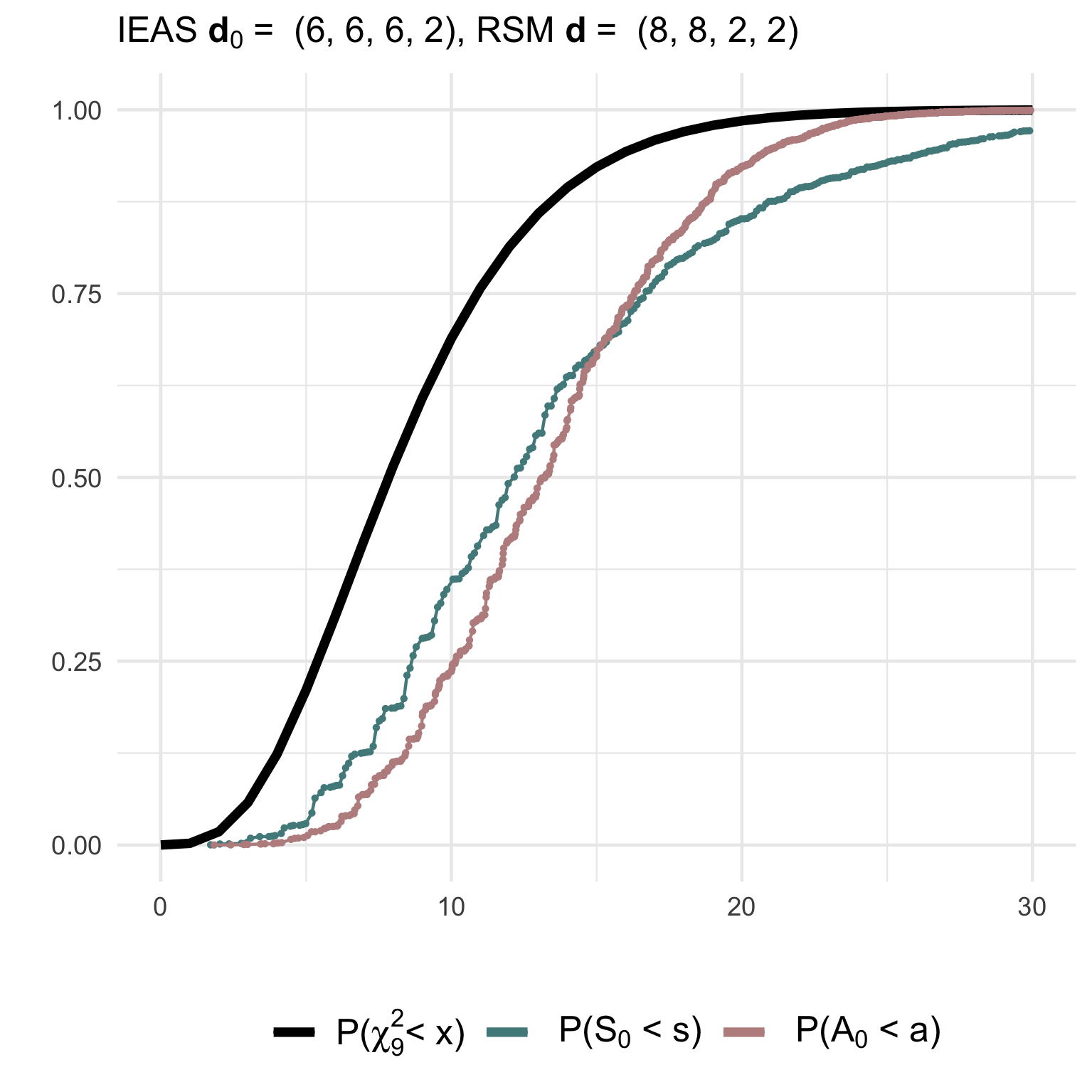 Use function gof_test to test whether the observed data follows IEA approximations of the RSM model. The null hypotheses can be simple or composite, although the latter is not recommended for small multigraphs as it is difficult to detect a false composite hypothesis under an RSM model and under IEA models (this can be checked and verified using gof_sim to simulate these cases).