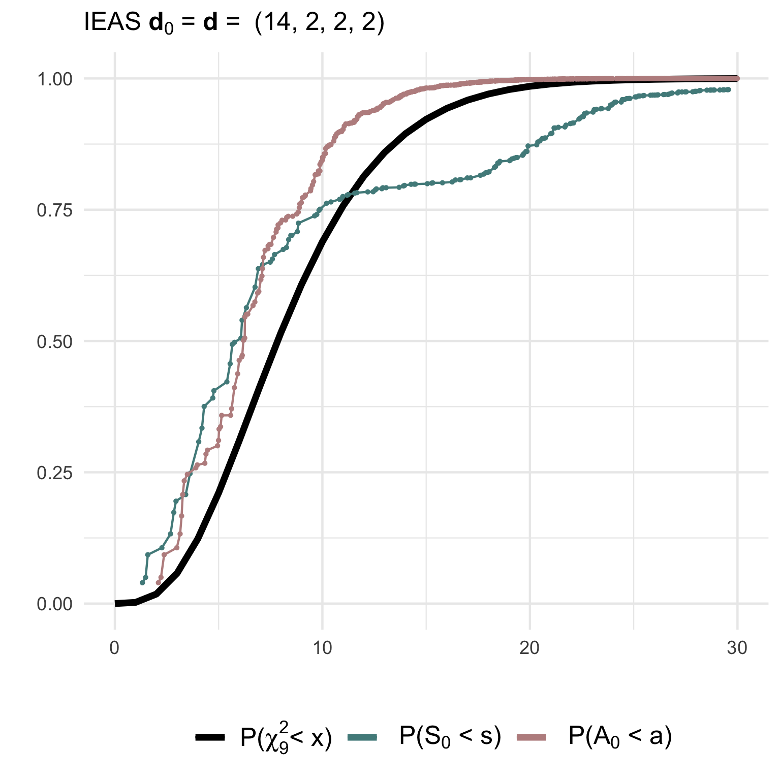 (2) Testing a correctly specified simple IEAS hypothesis with degree sequence (14,2,2,2):