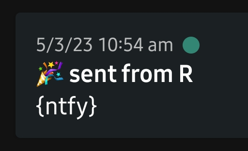#> [1] "https://ntfy.sh"With the package loaded, you can now send notifications which should appear on your device