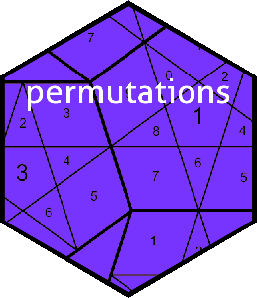The megaminx is a dodecahedral puzzle with similar construction to the Rubik cube puzzle that has 50 movable pieces and 132 coloured stickers (“facets”). The permutations package includes functionality to simulate the megaminx and exhibits an 82-turn superflip. The vignette gives an extended discussion.