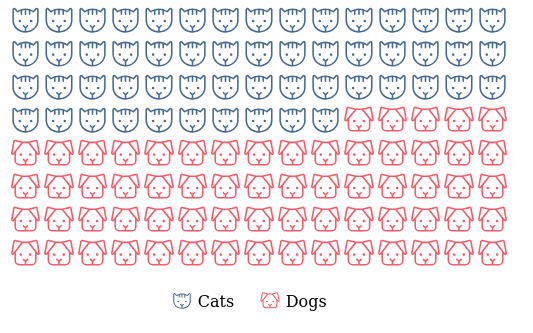 values = sample(c("Cats", "Dogs"), 200, TRUE),
