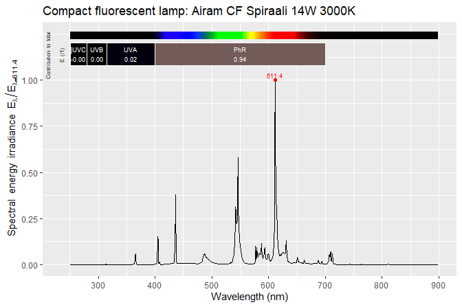 what_measured(lamps.mspct$Airam.CF.Spiraali.14W.3000K)