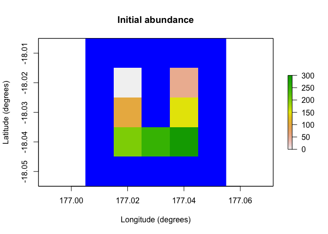 main = "Initial abundance", xlab = "Longitude (degrees)",