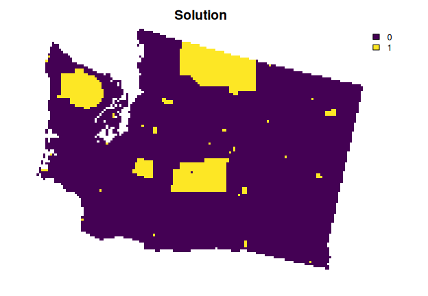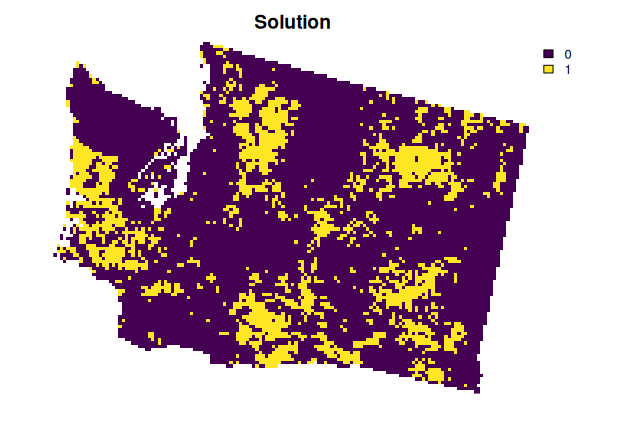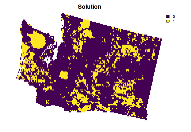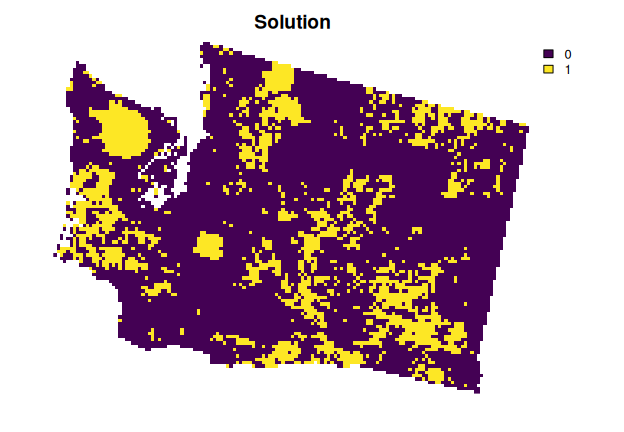 install.packages("highs", repos = "https://cran.rstudio.com/")Now, let’s generate a spatial prioritization. To ensure feasibility,
