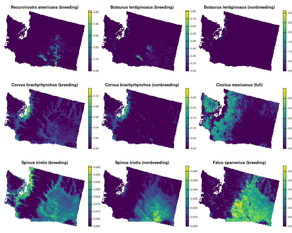 different bird species. To account for migratory patterns, the breeding