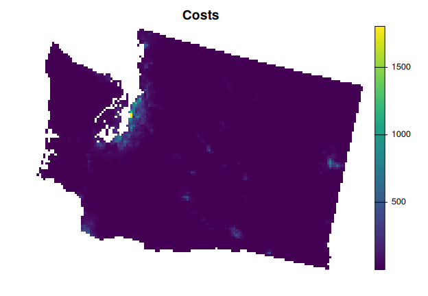 plot(wa_pu, main = "Costs", axes = FALSE)