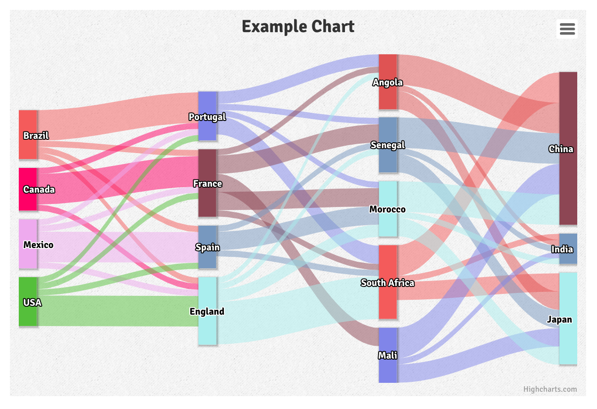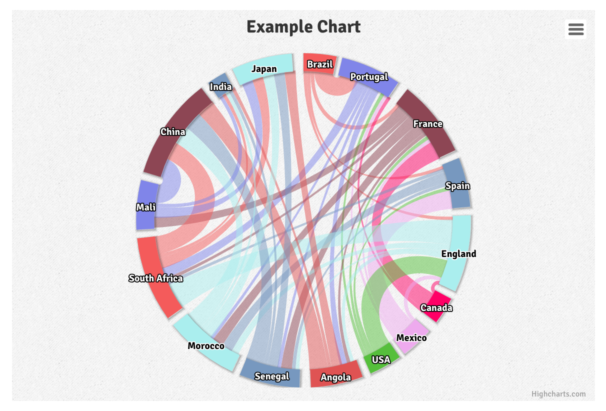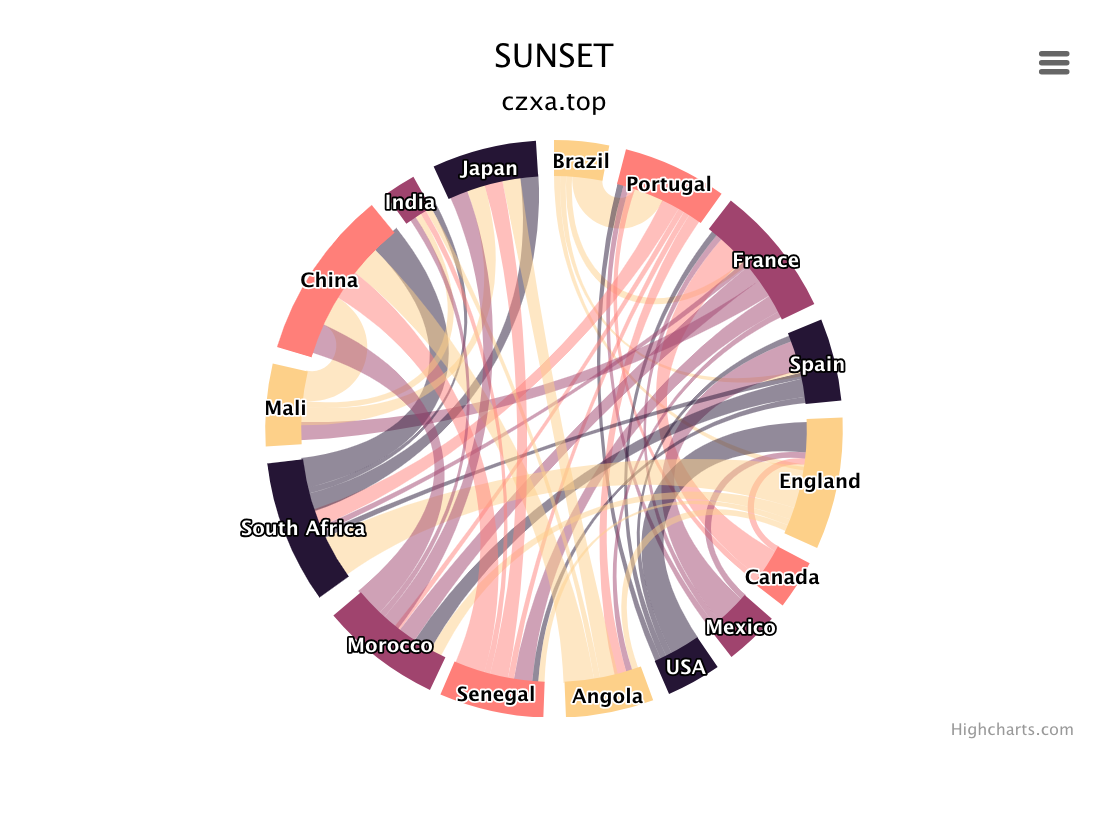 Dependency wheels and sankey diagrams can be drawn by many R Packages, such as circlize, networkD3, and ggalluvial. These packages are very powerful and easy to use, so why bother to write another duplicate package? As we can see, there are some relationships exist between dependency wheels and sankey diagrams. So why not combined these two types of charts into one R function. At the same time, it would be great to add a little interactivity to the graph. ‘Highcharts’, a commercial javascript charting library, can help me realize these ideas. By binding R functions and the ‘Highcharts’ charting library, ‘sankeywheel’ package provides a simple way to draw dependency wheels and sankey diagrams.