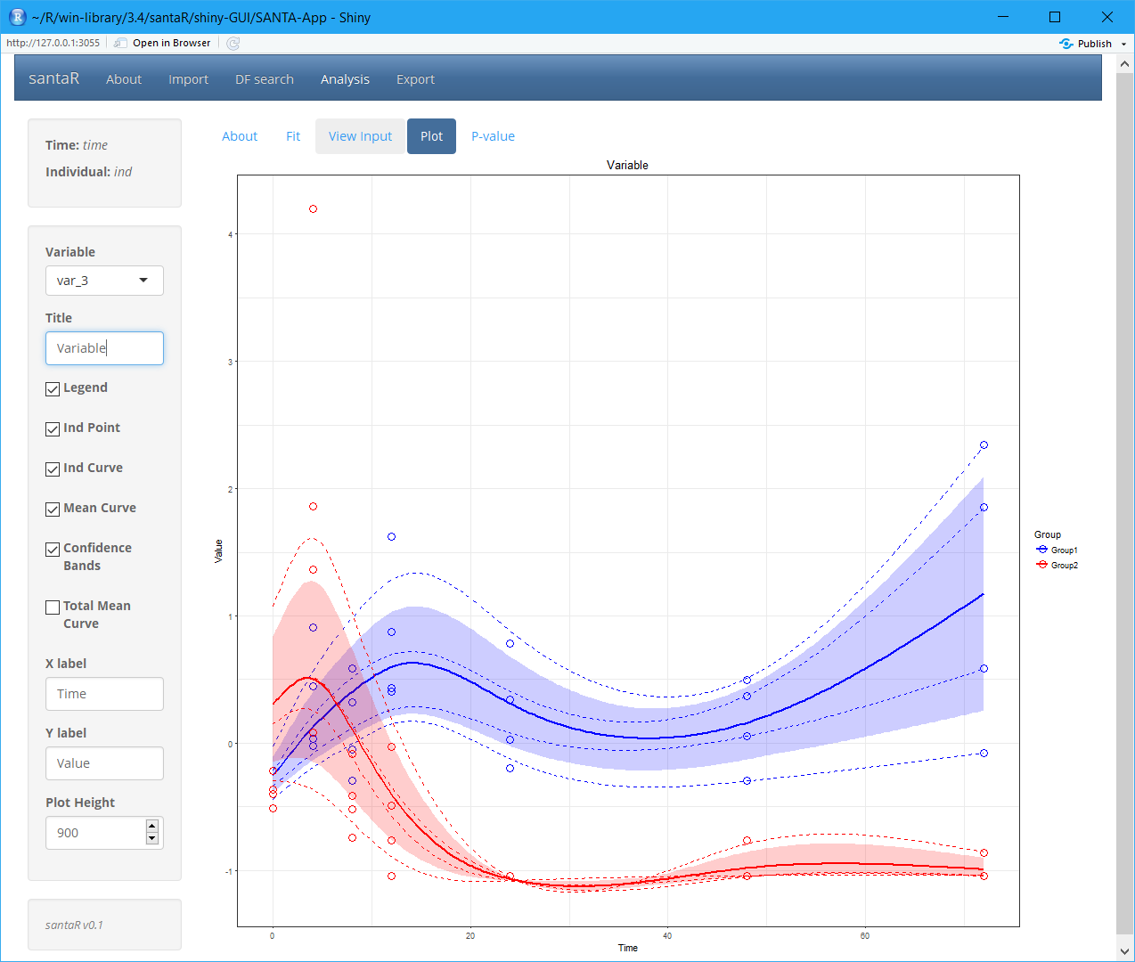 BiocManager::install("pcaMethods")To get started santaR’s graphical user interface implements all the functions for short asynchronous time-series analysis: