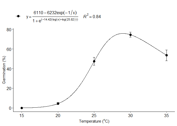Description: The package is dedicated to regression analysis of common models in scientific works and others with potential for use in estimating the optimal, maximum and minimum temperature for the occurrence of seed germination