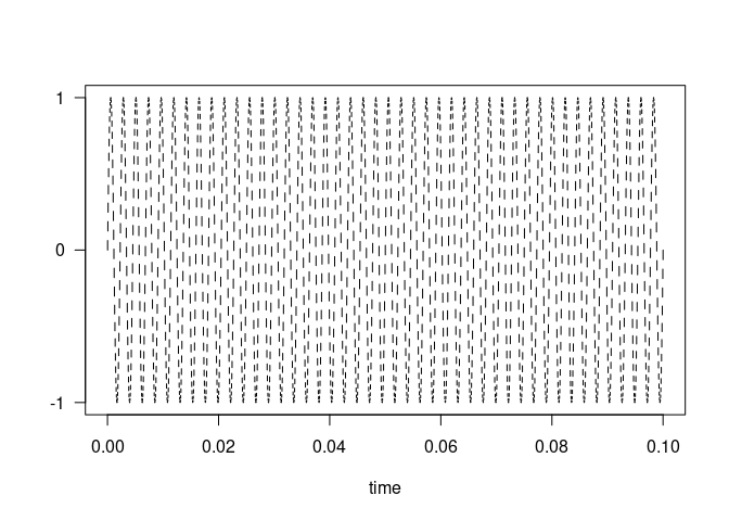 w <- sin(2*pi*440*seq(0,d,length.out=n)) # waveform (440Hz A note)