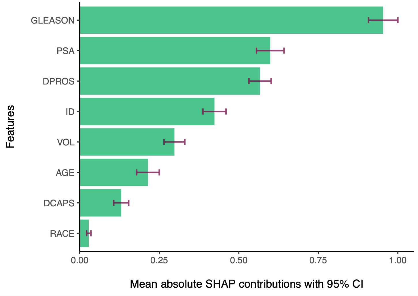 However, if we check the difference between “PSA” and “ID” features, the difference is insignificant, although “PSA” has a slightly higher weighted mean SHAP contribution:
