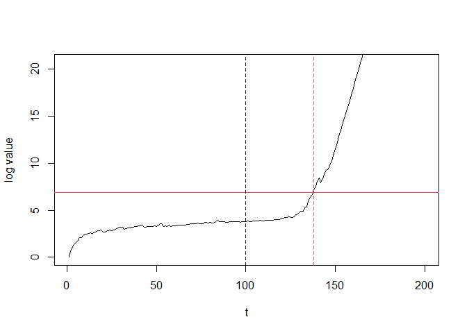 xlab = "t", ylab = "log value", ylim = c(0, 3 * e_detector$getThreshold()))