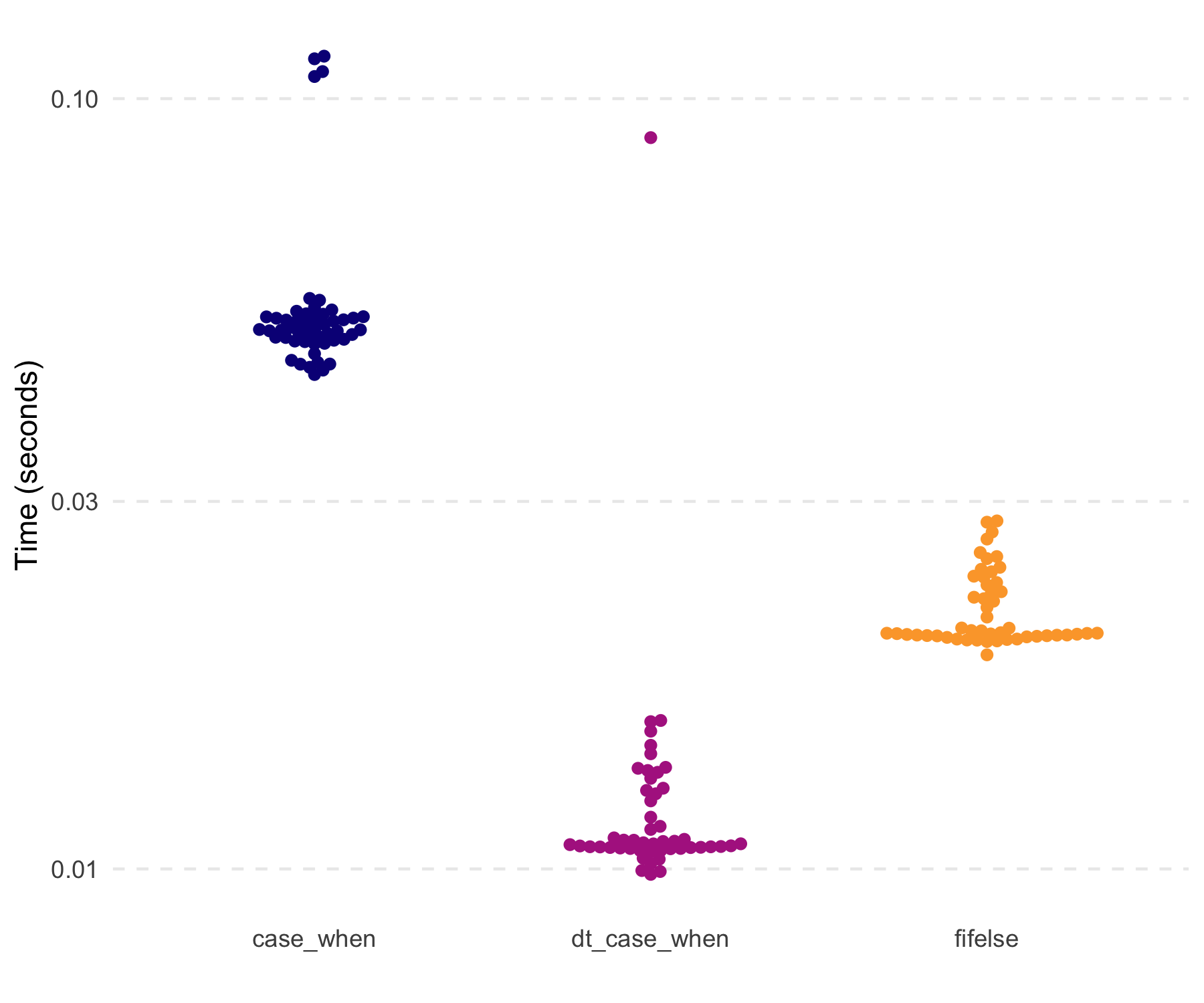 dt_pivot_longer() for fast pivoting using data.table::melt()dt_pivot_wider() for fast pivoting using data.table::dcast()If Else (similar to dplyr::case_when()):