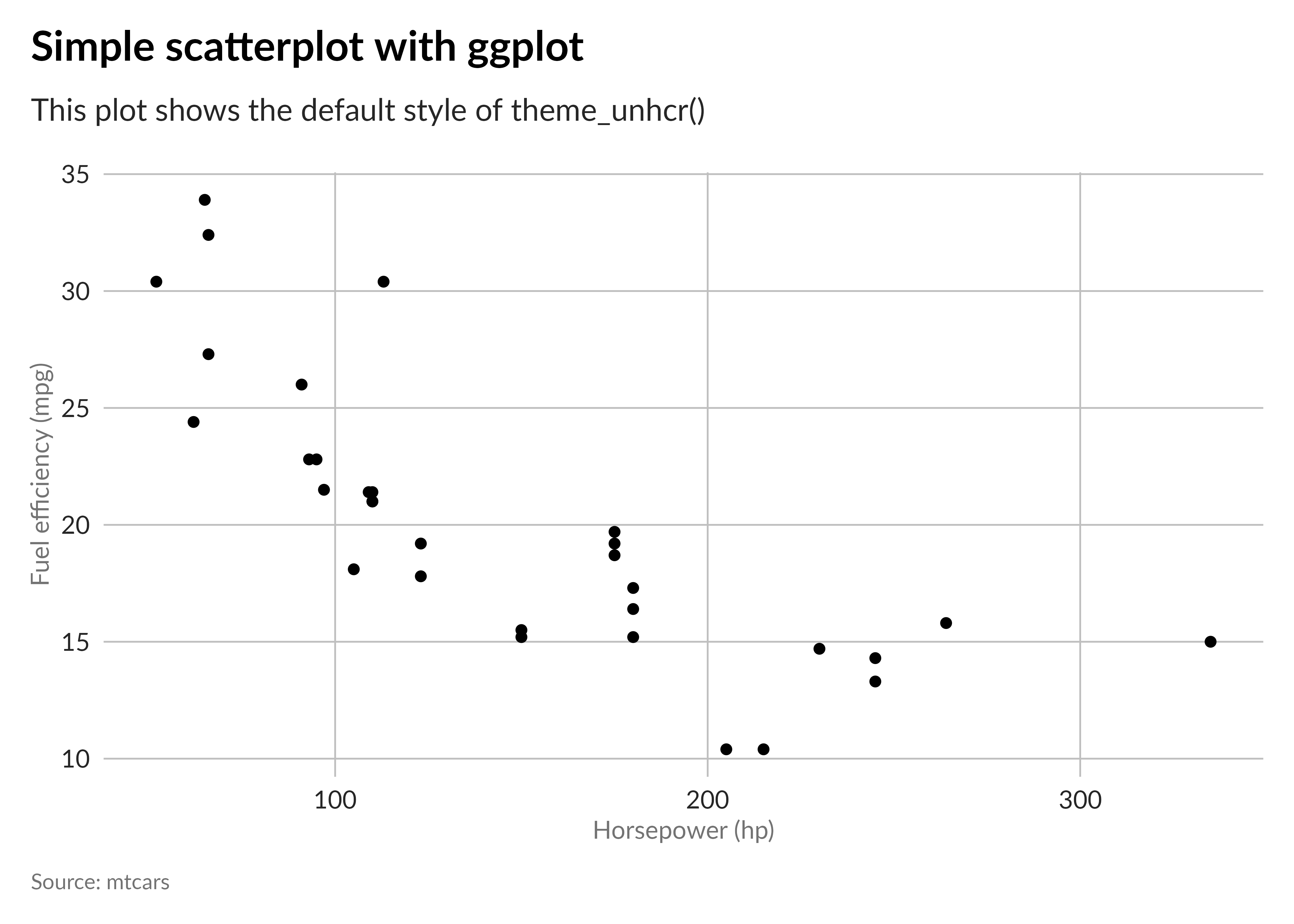 subtitle = "This plot shows the default style of theme_unhcr()",