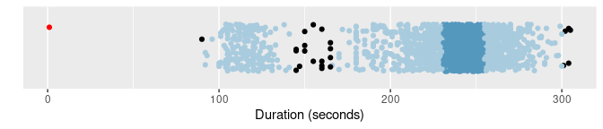 labs(x = "Duration (seconds)", y = "Waiting time (seconds)")