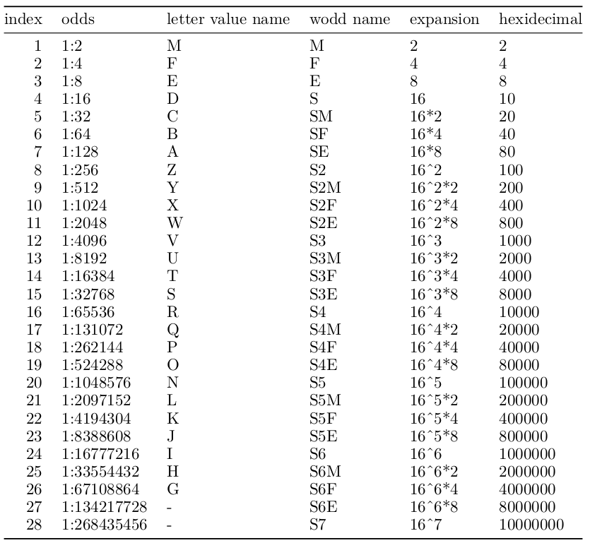 #> [1] 15734Letter-Values are a fantastic tool! I think the naming could be improved. For this reason I introduce whisker odds (wodds) as an alternative naming system. My hypothesis is that with an alternative naming system the use of these descriptive statistics will be see more use. This is a rebranding of a what I think is a powerful modern statistical tool.